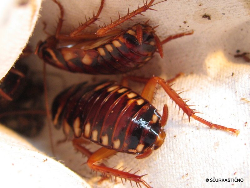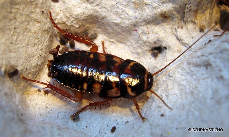 Kakor koli. P. australiasie je ščurek, ki potrebuje visoko vlažnost in toploto za njegovo razmnoževanje ter obilico proteinske hrane. Na začetku sem ga probal gojiti v jajčnih kartonih a uspeha ni bilo. Sedaj jih gojim v posodi z nekaj centimetri šote katero vlažim ter veliko koreninami kjer se skrivajo. Valijo oteke iz katerih se ob pravilni vlažnosti kaj hitro izvalijo malički. Malčki so še posabaj očarljivi – temni z belo črto ob pasu in prsih. Do popolnega odraslega, ki je dolg ca 3cm spremeni kar nekaj barvnih vzorcev. So pravi explorerji zato je dobro zatesnjena posoda kar priporočljiva. So idealna hrana za srednje velike eksotične gurmane. Njihovo telo je mehko z malo hitinastega oklepa. Podobni so turkom (lateralesom) le da so skoraj 1x večji.