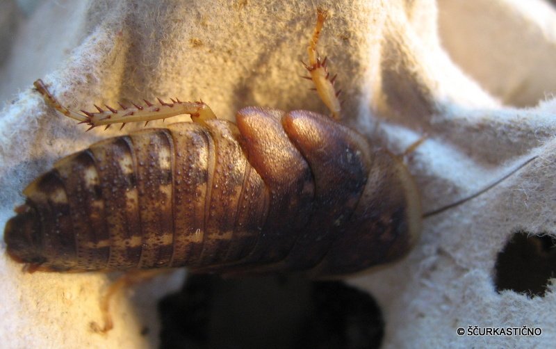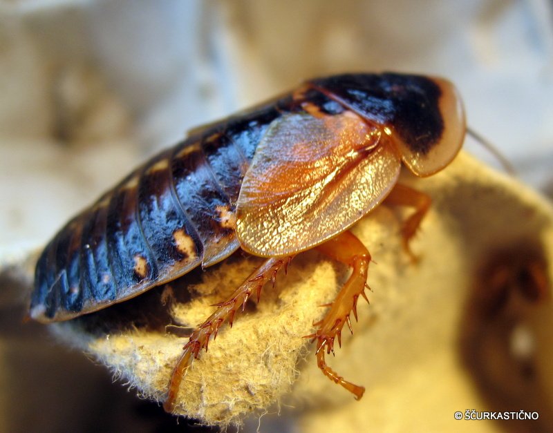 Sigurno ena najbolj razširjenih vrst ščurka pri nas in pa tudi po svetu, gledano v svetu teraristike. Dokaj hitra rast, razmnoževanje, preprosto vzdrževanje, ni plezalec, živorodnost (cca 25 mladic) in ravno prava velikost so glavni vzrok, da je tako razširjen med nami. Samca ločimo od samice po krilih, ki jih tu pa tam uporabi za prelet oz skok v stiski. Njihov gojitvenii prostor so jajčne škatlje, ki jim nudijo mnogo skrivališč. Hranim jih kot vse ostale vrste - s kvalitetno pasjo ali mačjo hrano ter mnogo zelenjave in sadja. Zelo jim paše, če jim ponudimo nekaj vlažne šote. Nej si bo to kot celotna podlaga ali samo kot plasična posoda. V njej se mladice kot starejši skrivajo in pravilno levijo. Pazimo, da je terarij dobro zračen.